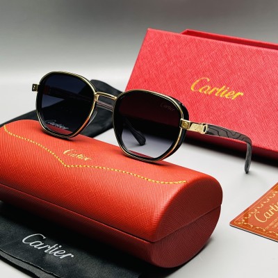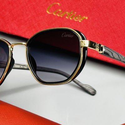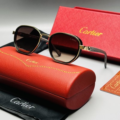 عینک افتابی برند کارتیه ، جنس فریم کائوچو و فلز و دسته ها طرح چوب کار شده ، استاندارد عدسی uv400 و وزن عینک سبک ، مناسب برای اقا و خانوم