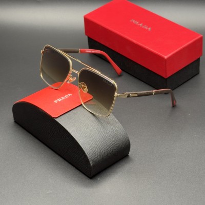 عینک افتابی برند پرادا با جنس فریم استیل و عدسی پلی کربنات دارای استاندارد uv400 با وضوح دید عالی مناسب صورت های متوسط و نسبتا بررگ